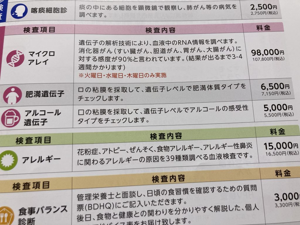 個人的に気になるオプションは「アルコール遺伝子検査」だな。
