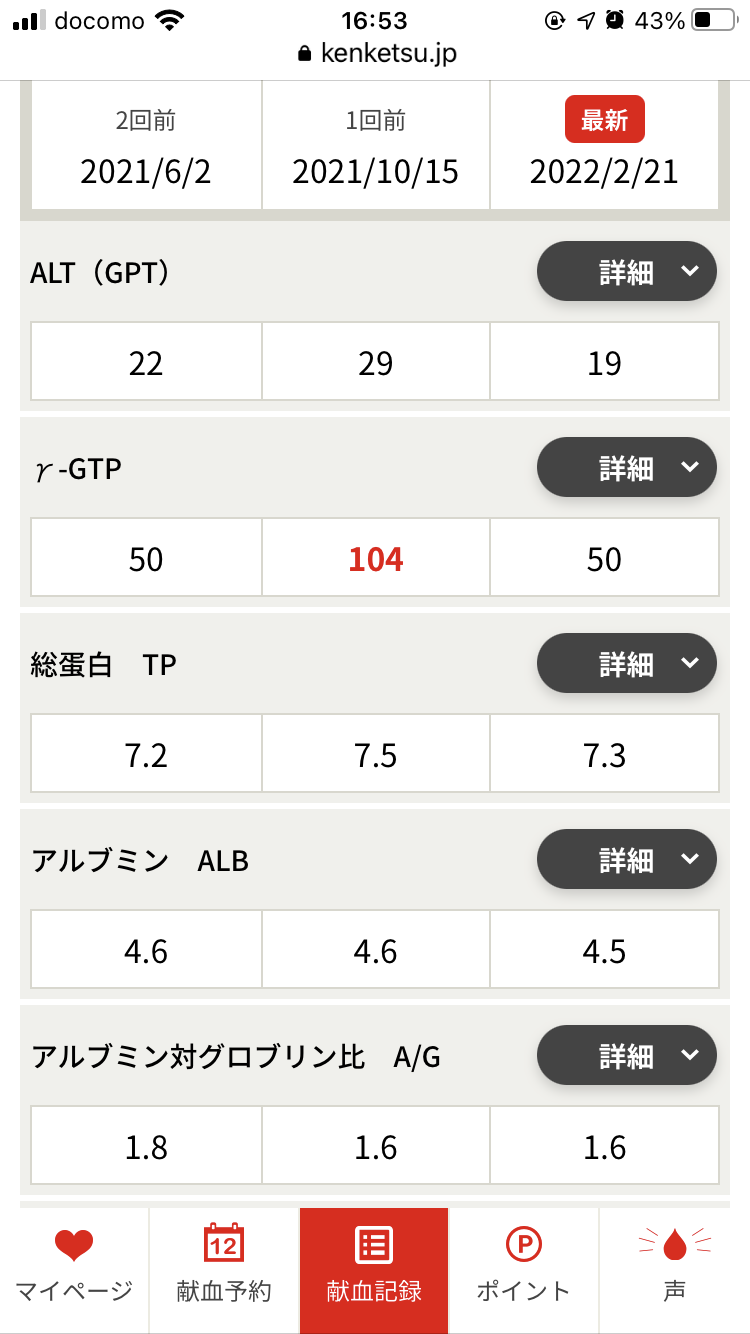 (前回あがったγGTPはしっかり下がりましたとさ)