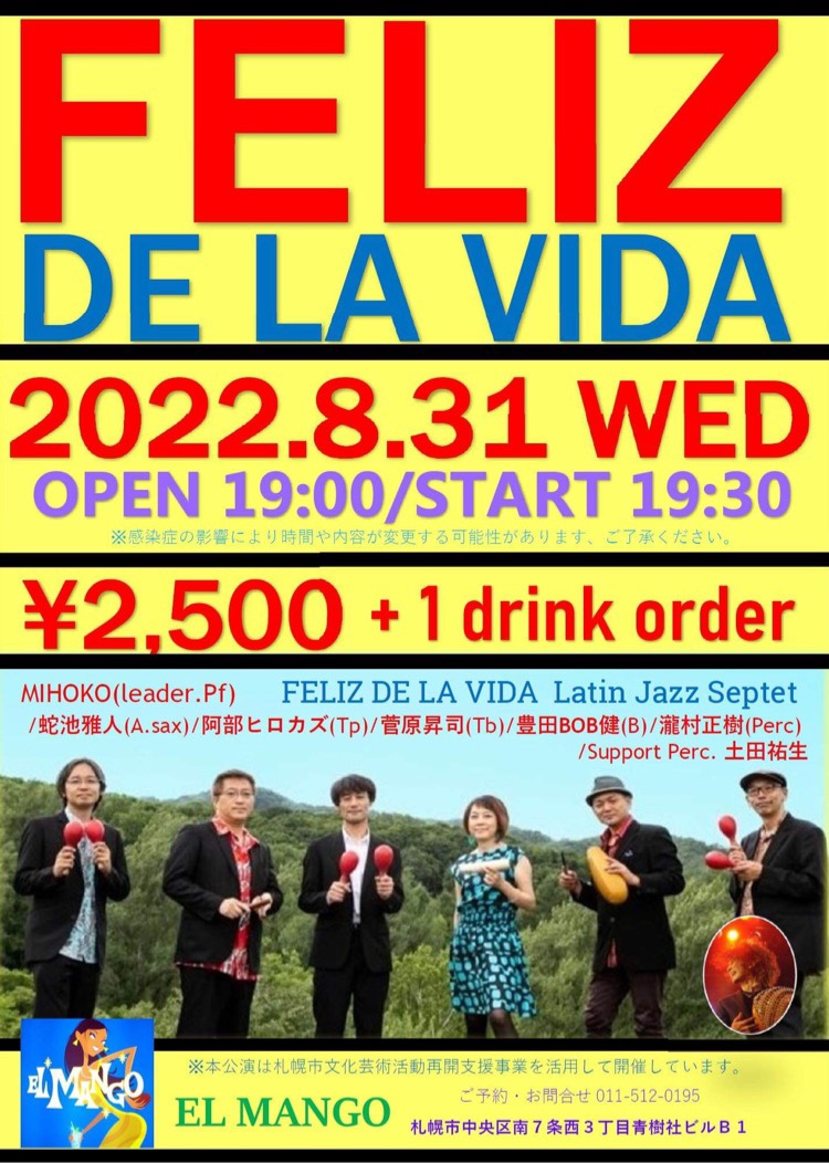 8月最後のライブはFeliz De La Vida 音楽 2022.08.31 ラテンですラテン。 今回はダンスレッスンも付いているとのことなので踊りましょう〜。 404 NOT FOUND | 菅原昇司websiteライブスケジュールたまに雑談