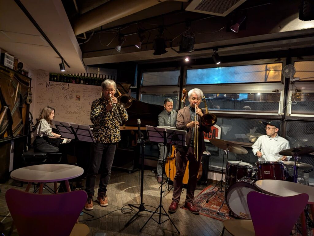 酒本廣継 2Trombone Meeting 音楽 2024.11.08 昨日も緊張感のある演奏ができました。 次回は12月20日紙ひこうきで。 酒本廣継 2Trombone Meeting酒本廣継(trombone) 菅原昇司(trombone) 小板橋弦太(piano) 柳真也(bass) 渡辺主税(drums)