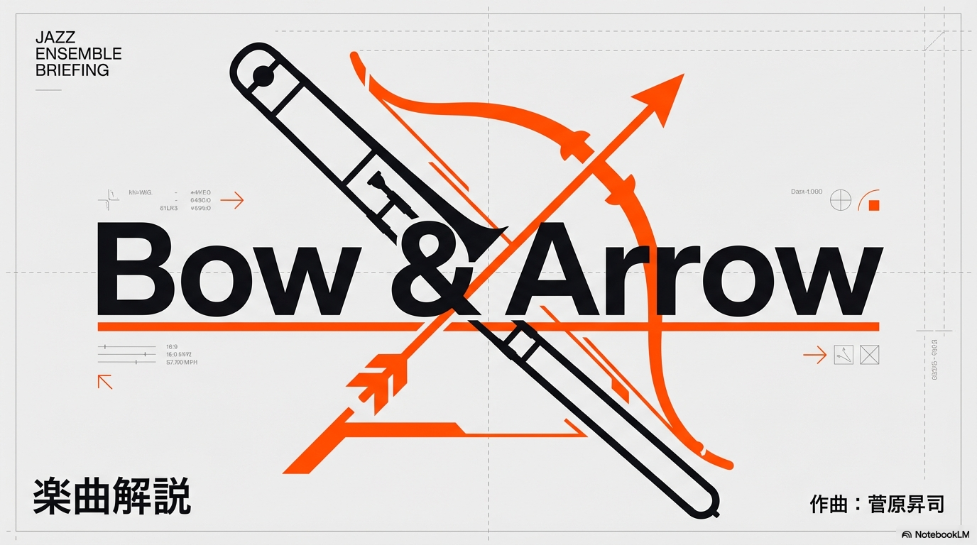 ジャズ作曲家・菅原昇司による『Bow & Arrow』。そのタイトルが示す通り、この楽曲の本質は「準備された緊張(Bow)」と「高速の解放(Arrow)」の対比にあります。5本のトロンボーン、疾走するリズム、そして緻密に計算されたスコア。譜面の奥底に眠る「熱量」の設計図を紐解くと、そこには単なる情熱だけではない、冷徹なまでの構造美が隠されています。なぜこの曲が聴き手の心を一撃で射抜くのか、そのアナリティカルな秘密を探ります。