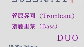音楽 11日菅原斎藤デュオ 今年の5月にオープンしたばかりのお店「402」で初めて演奏させてもらいます。飲みにはすでに行ってます、いいところ。最近自分のリーダーでは大編成でアンサンブルをやってましたが、最小人数でもきちんとアンサンブルしなきゃ、と思い企画しました。数曲... 2022.09.09 音楽